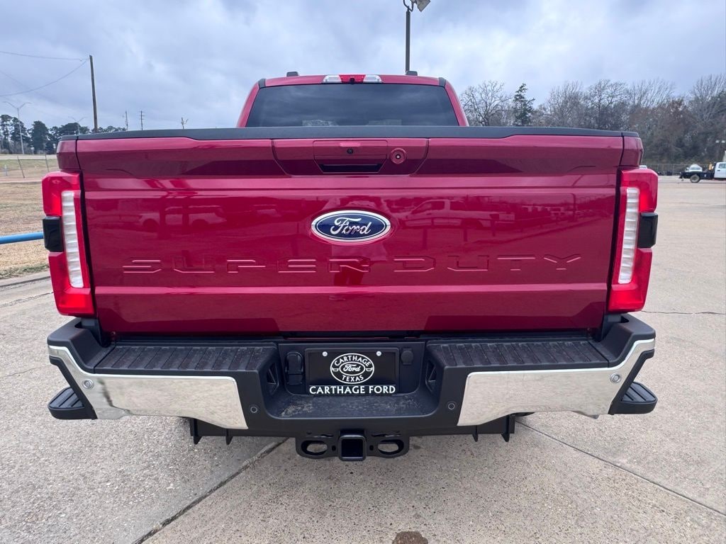 This 2026 Ford F-250SD Lariat in Ruby Red Metallic Tinted Clearcoat comes with the following features: 6.8L V8 10-Speed Automatic 4WD 4WD, ABS brakes, Alloy wheels, Compass, Electronic Stability Control, Front dual zone A/C, Heated door mirrors, Heated front seats, Heated rear seats, Illuminated entry, Low tire pressure warning, Remote keyless entry, and Traction control Ford Connectivity Package (1-Year Included), GVWR: F-250 >10K Package, Internet access capable: 5G Modem - Ford Connectivity Package, 4WD, ABS brakes, Alloy wheels, Compass, Electronic Stability Control, Front dual zone A/C, Heated door mirrors, Heated front seats, Heated rear seats, Illuminated entry, Low tire pressure warning, Remote keyless entry, Traction control, 3.73 Axle Ratio, 4-Wheel Disc Brakes, 8 Speakers, Adjustable pedals, Air Conditioning, AM/FM radio: SiriusXM with 360L, Auto High-beam Headlights, Auto-dimming Rear-View mirror, Automatic temperature control, BLIS with Cross-Traffic Alert, Brake assist, Bumpers: chrome, Delay-off headlights, Driver door bin, Driver vanity mirror, Dual front impact airbags, Dual front side impact airbags, Emergency communication system: SYNC 4 911 Assist, Flow-Through Console, Front ActiveX Trimmed 40/Console/40 Seats, Front anti-roll bar, Front Bucket Seats, Front Center Armrest, Front fog lights, Front reading lights, Fully automatic headlights, Garage door transmitter, Heated steering wheel, Memory seat, Navigation system: Connected Navigation, Outside temperature display, Overhead airbag, Overhead console, Panic alarm, Passenger door bin, Passenger vanity mirror, Pedal memory, Power door mirrors, Power driver seat, Power passenger seat, Power steering, Power windows, Privacy Glass, Radio: B&O Sound System by Bang and Olufsen, Rain sensing wipers, Rear Parking Sensors, Rear reading lights, Rear seat center armrest, Rear step bumper, Rear window defroster, Security system, SiriusXM with 360L, Speed control, Split folding rear seat, Steering wheel mounted audio controls, SYNC 4 with Enhanced Voice Recognition, Tachometer, Telescoping steering wheel, Tilt steering wheel, Trip computer, Turn signal indicator mirrors, Variably intermittent wipers, Ventilated front seats, and Wheels: 18" Bright Machined and Carbonized Gray Aluminum.
