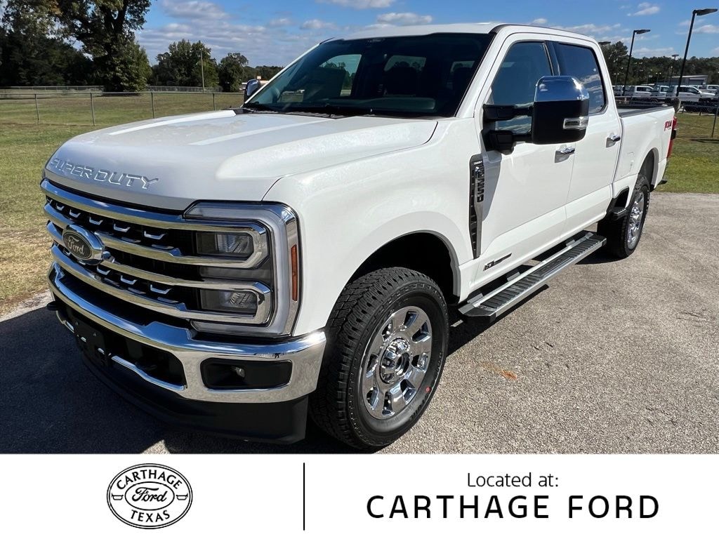 This 2026 Ford F-250SD Lariat in White Metallic comes with the following features: Power Stroke 6.7L V8 DI 32V OHV Turbodiesel 10-Speed Automatic 4WD 4WD Chrome Package (6" Angular Bright Anodized Step Bars, Chrome Door Handles, Chrome Exhaust Tip, Unique Chrome Mirror Caps, and Wheels: 20" Chrome PVD Aluminum), F-250 >10K GVWR Package, Ford Connectivity Package (1-Year Included), FX4 Off-Road Package (Hill Descent Control, Off-Road Specifically Tuned Shock Absorbers, and Unique FX4 Off-Road Box Decal), Internet access capable: 5G Modem - Ford Connectivity Package, Order Code 608A, 4WD, 4-Wheel Disc Brakes, 8 Speakers, ABS brakes, Adjustable pedals, Air Conditioning, Alloy wheels, AM/FM radio: SiriusXM with 360L, Auto High-beam Headlights, Auto-dimming Rear-View mirror, Automatic temperature control, BLIS w/Cross-Traffic Alert, Brake assist, Bumpers: chrome, Compass, Delay-off headlights, Driver door bin, Driver vanity mirror, Dual AGM 68 AH Battery, Dual front impact airbags, Dual front side impact airbags, Electronic Stability Control, Emergency communication system: SYNC 4 911 Assist, Engine Block Heater, Flow-Through Console, Front ActiveX Trimmed 40/Console/40 Seats, Front anti-roll bar, Front Bucket Seats, Front Center Armrest, Front dual zone A/C, Front fog lights, Front License Plate Bracket, Front reading lights, Fully automatic headlights, Garage door transmitter, Heated door mirrors, Heated front seats, Heated rear seats, Heated steering wheel, Illuminated entry, Low tire pressure warning, Memory seat, Navigation system: Connected Navigation, Outside temperature display, Overhead airbag, Overhead console, Panic alarm, Passenger door bin, Passenger vanity mirror, Pedal memory, Power door mirrors, Power driver seat, Power passenger seat, Power steering, Power windows, Privacy Glass, Radio: B&O Sound System by Bang & Olufsen, Rain sensing wipers, Rear Parking Sensors, Rear reading lights, Rear seat center armrest, Rear step bumper, Rear window defroster, Remote keyless entry, SecuriCode Keyless Entry Keypad (Driver's Side), Security system, SiriusXM w/360L, Speed control, Split folding rear seat, Steering wheel mounted audio controls, SYNC 4 w/Enhanced Voice Recognition, Tachometer, Tailgate Step & Handle, Telescoping steering wheel, Tilt steering wheel, Traction control, Trip computer, Turn signal indicator mirrors, Upfitter Switches (6), Variably intermittent wipers, Ventilated front seats, and Wheels: 18" Bright Machined & Carbonized Gray Alum.