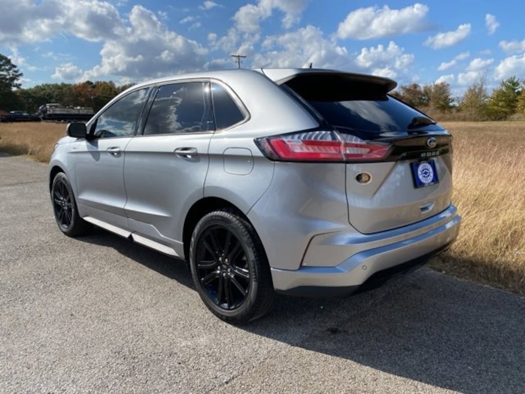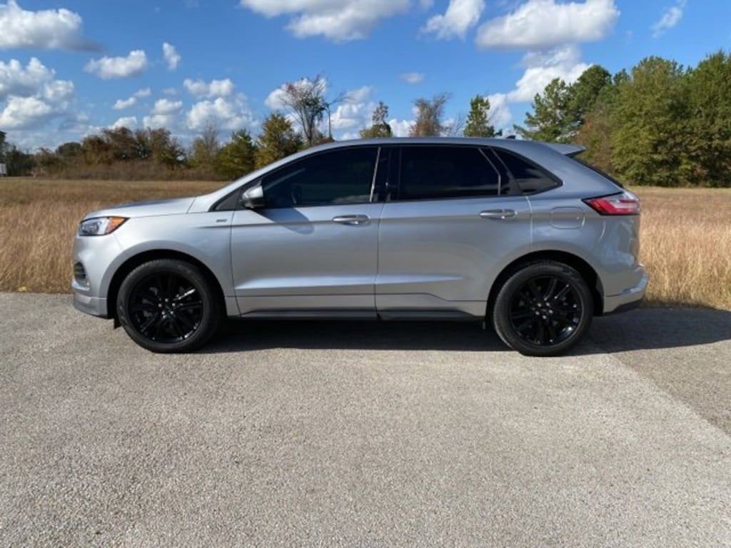 This 2023 Ford Edge ST Line in Iconic Silver Metallic comes with the following features: EcoBoost 2.0L I4 GTDi DOHC Turbocharged VCT 8-Speed Automatic AWD **ANDROID AUTO & APPLE CARPLAY**, **AUTO HEADLIGHTS**, **AWD**, **BLIND SPOT ALERT SYSTEM**, **BLIND SPOT WARNING SYS**, **BLUETOOTH HANDS FREE CALLING**, **FRONT USB CHARGING PORTS**, **LANE DEPARTURE WARNING**, **LEATHER**, **MOONROOF**, **NAVIGATION**, **NON SMOKER**, **One OWNER Autocheck**, **POWER ADJUSTABLE PASSENGER SEAT**, **POWER ADUSTABLE DRIVER'S SEAT**, **REAR PARK ASSIST**, **REAR TRAFFIC ALERT**, **REAR USB CHARGING PORTS**, **REAR VIEW CAMERA**, **REMOTE START**, **SUNROOF**, **Locally Owned**, and **Low Mileage** AWD Equipment Group 250A, AWD, 3.80 Axle Ratio, 4-Wheel Disc Brakes, 6 Speakers, ABS brakes, ActiveX Seating Material Heated Bucket Seats, Air Conditioning, Alloy wheels, AM/FM radio: SiriusXM with 360L, Auto High-beam Headlights, Auto-dimming Rear-View mirror, Automatic temperature control, Brake assist, Bumpers: body-color, Compass, Delay-off headlights, Driver door bin, Driver vanity mirror, Dual front impact airbags, Dual front side impact airbags, Electronic Stability Control, Emergency communication system: SYNC 4 911 Assist, FordPass Connect, Four wheel independent suspension, Front anti-roll bar, Front Bucket Seats, Front Center Armrest w/Storage, Front dual zone A/C, Front fog lights, Front reading lights, Fully automatic headlights, Garage door transmitter, Heated door mirrors, Heated front seats, Heated Steering Wheel, Illuminated entry, Knee airbag, Leather steering wheel, Low tire pressure warning, Occupant sensing airbag, Outside temperature display, Overhead airbag, Overhead console, Panic alarm, Panoramic Vista Roof, Passenger door bin, Passenger vanity mirror, Power door mirrors, Power driver seat, Power Liftgate, Power passenger seat, Power steering, Power windows, Radio: AM/FM Stereo/MP3 Capable, Rear anti-roll bar, Rear Parking Sensors, Rear reading lights, Rear seat center armrest, Rear window defroster, Rear window wiper, Remote keyless entry, Security system, SiriusXM w/360L, Speed control, Speed-Sensitive Wipers, Split folding rear seat, Spoiler, Steering wheel mounted audio controls, SYNC 4A w/Enhanced Voice Recognition, Tachometer, Telescoping steering wheel, Tilt steering wheel, Traction control, Trip computer, Variably intermittent wipers, and Wheels: 20 Premium Gloss Black-Painted Aluminum.